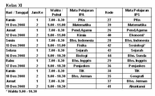 Info Sekolah Pekan Ulangan Semester 1 Tahun 2008-2009 Tanggal : 15/12/2012 Kembali ke AtasInfo Sekolah Lainnya :Rapat Kerja Tahun 2008Persiapan Pekan Olimpiade sekolah